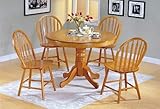 Best Seller 5pc Country Style Oak Finish Wood Round Dining Table +4 Windsor Chair Set Reviews: